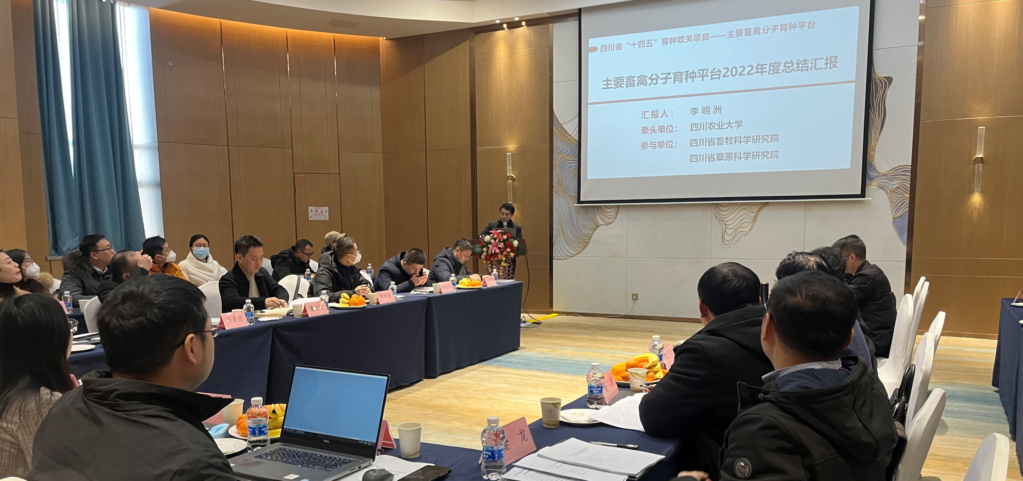 1月12日上午,由我校主持的四川省“十四五”畜禽育种攻关项目“主要畜禽分子育种平台”2022年度工作总结暨课题绩效考评会顺利召开。四川省科学技术厅农村科技处副处长董文刚,四川省农村科技发展中心副主任周华强,四川省农业科学院科技处副处长何希德,我校科技处副处长杜俊波、动物营养研究所副所长冯琳、发展规划与学科建设处副处长尹华东和动物遗传育种研究所副所长刘贺贺7位专家应邀出席。四川农业大学、四川省畜牧科学研究院、四川省草原科学研究院3个专题负责人,以及课题骨干成员及参与研究工作的部分研究生50余人参加会议。会议由项目首席专家、四川农业大学副校长李明洲教授主持。