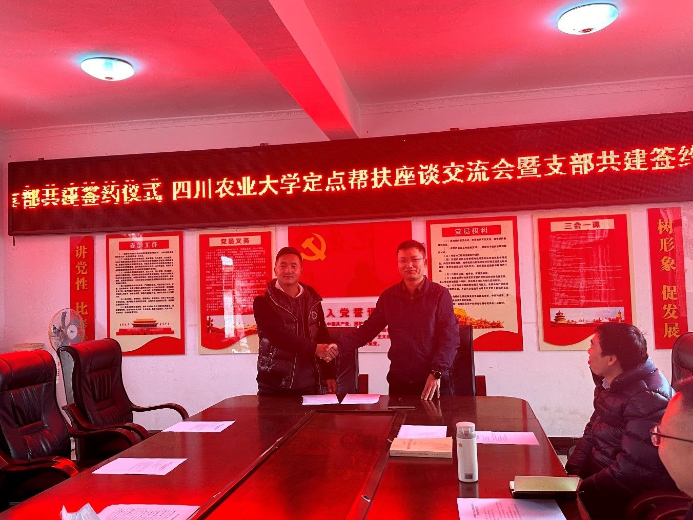 1月4日,伟德BETVlCTOR1946在雷波县石板滩村开展了支部结对共建活动。动物遗传育种研究中心党支部书记陈仕毅与雷波县石板滩村支部书记丰母体签订了《支部共建协议》,这是2024年开年以来学院签署的第二份党建结对协议,双方围绕“讲共建、话振兴、谈思路、谋发展”主题,深入探讨了共建的指导思想和工作机制,并交流分享了党建工作中的积极经验和特色做法,明确了今后共建方向。